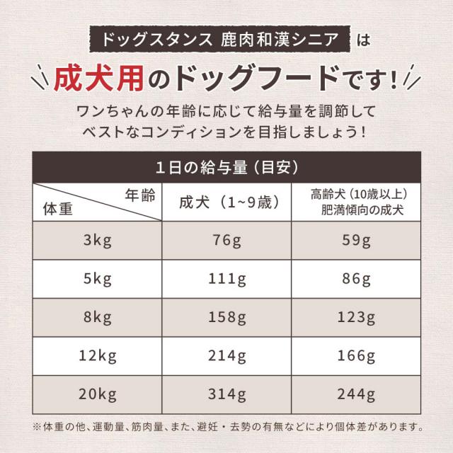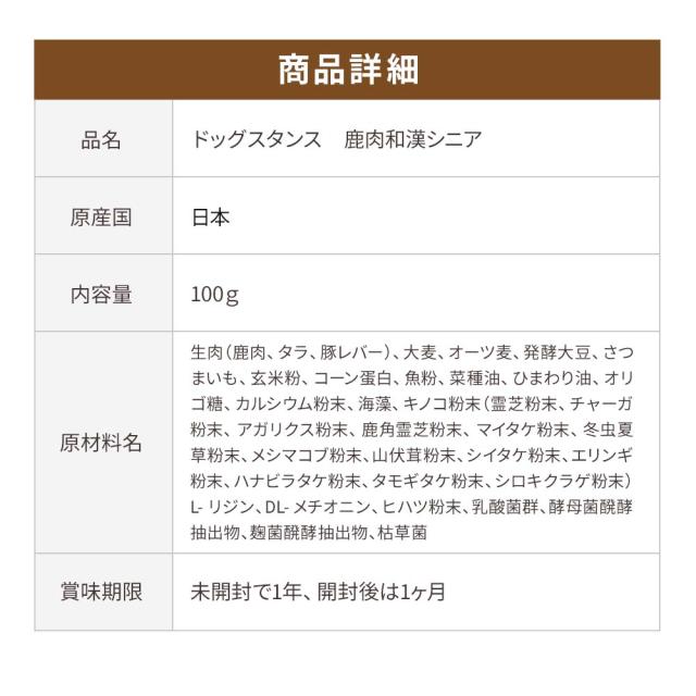 ドッグスタンス鹿肉和漢シニアは、成犬用のドッグフード