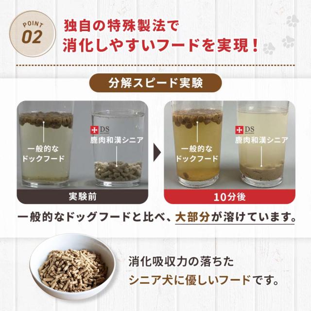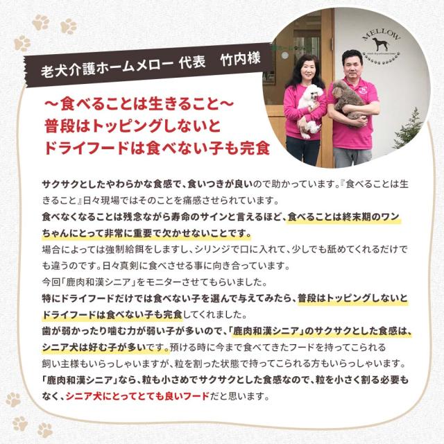 シニア犬に特化した健康食材で、中高齢犬の元気をサポートするドライタイプ 鹿肉和漢シニアは、成犬用のドッグフード