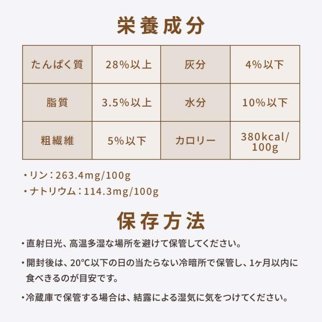 また、無発泡製法のドライフードは、消化器官を活性化させ健全な機能の維持に役立ちます。