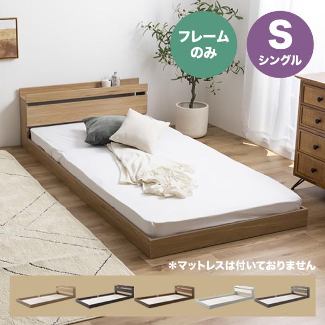 【シングル】【フレームのみ】 ROCOA ベッド コンセント付きベッド ナチュラル色他 全5色対応 超ローベッド 本体 幅100cm 奥行210cm 高さ45cm 組み立て式 ※マットは付いておりません。