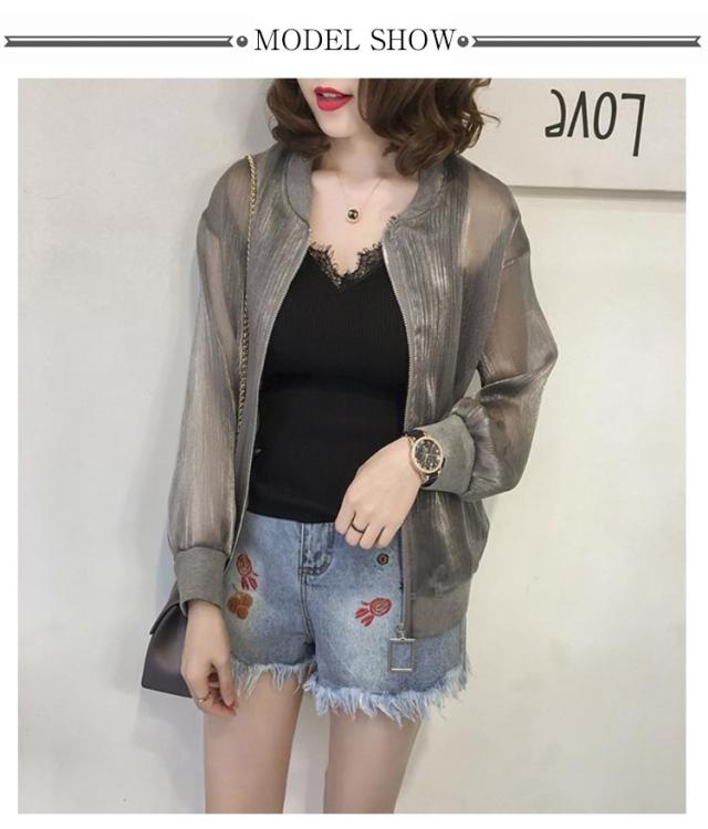 シア—ブルゾン UVパーカー ライトアウター レディース アウター ブルゾン 透け感 光沢感 可愛い ノーカラー ジップアップ ジャケット 羽織り 長袖 紫外線対策 日よけ対策 ショート シアー ゆったり 体型カバー ジップ ファスナー UVケア 冷房対策 春夏 送料無料