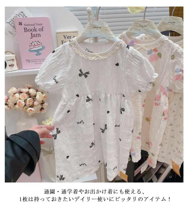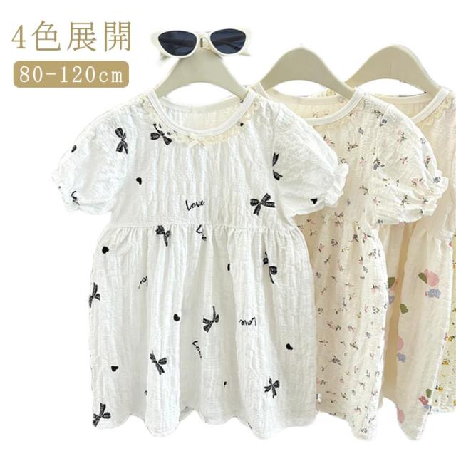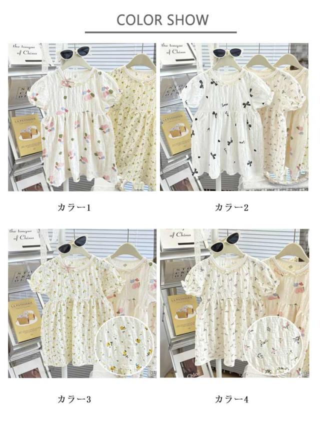 ワンピース バーブル袖 ベビー キッズ ベビー ドレス 半袖 子な供 子ども 女の子 花柄 かわいい おしゃれ 部屋着 夏服 保育園 幼稚園 韓国ファッション 誕生日 姉妹 双子 プレゼント 80 90 100 110 120 送料無料