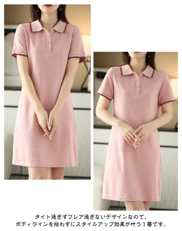 ポロワンピース 半袖 レディース ワンピース 夏 ポロ 襟付き ワンピ 膝丈 スポーティー パイピング ゴルフ ポロシャツ風 Iライン ストレートワンピース ゆったり 体型カバー 着?せ 細見え ポロワンピ 大きいサイズ 韓国風 【送料無料】