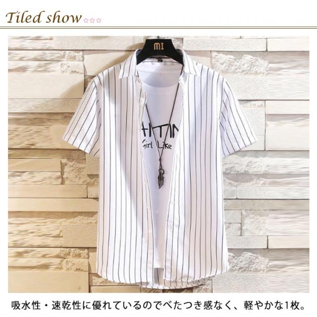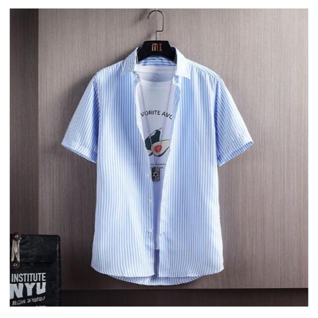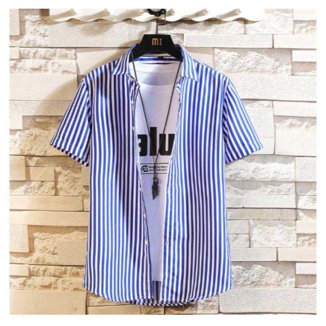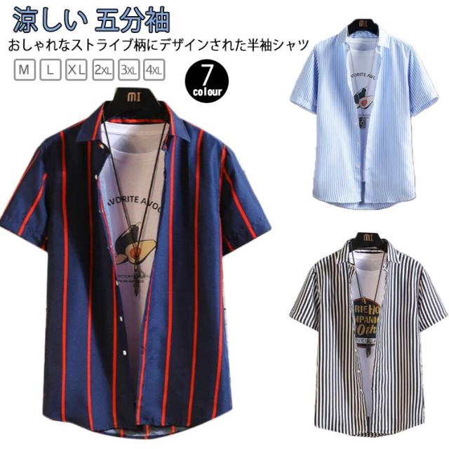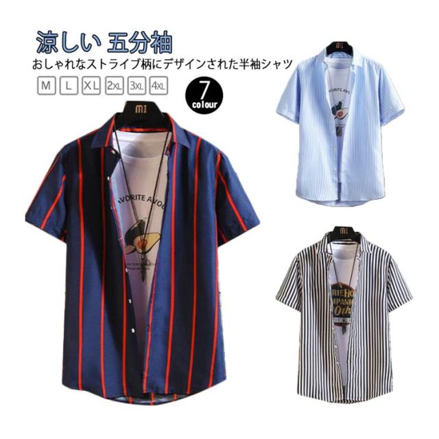 シャツ 半袖 メンズ ストラップ ストライプシャツ ゆったり 涼しい 五分袖 カジュアルシャツ 半袖シャツ ビジネス カジュアルシャツ tシャツ ビッグシャツ 快適 ノーアイロンシャツ ビジネスシャツ スリム 通勤 オシャレ 大きいサイズ 夏 春夏