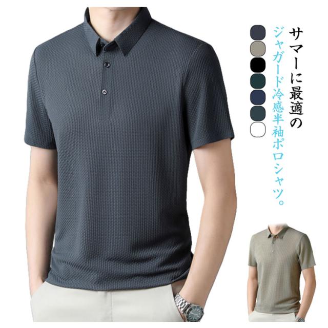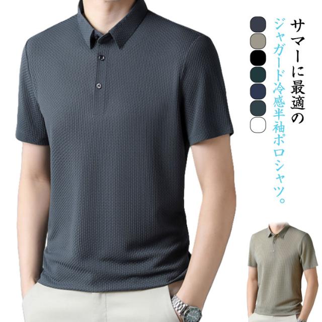 ジャガード 接触冷感 ポロシャツ メンズ 半袖 カジュアル 半袖ポロシャツ 細身 ゴルフウェア 大きいサイズ スポーツ 涼しい 薄手 スリム ひんやり カットソー カジュアル 半袖ポロシャツ シンプル M L XL 2XL 3XL 4XL 5XL 6XL