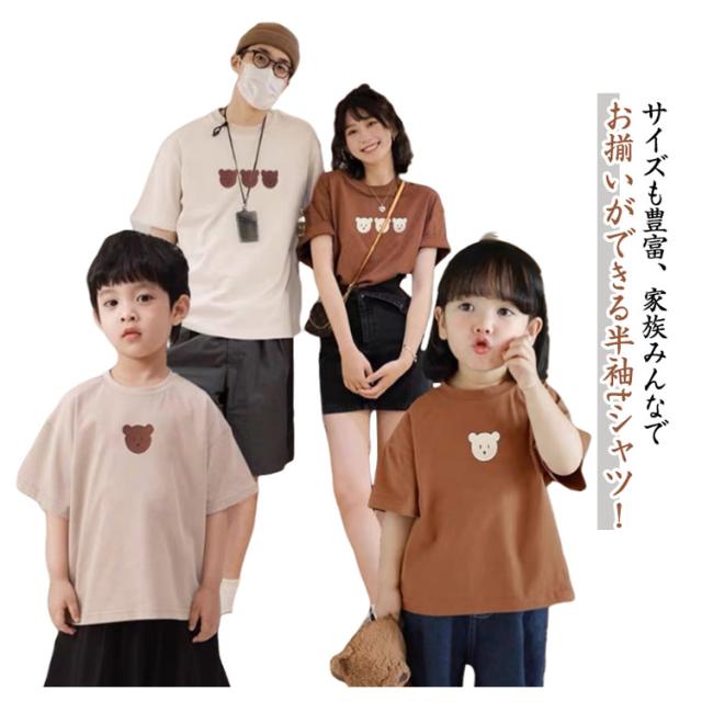 熊柄 親子 おそろい 韓国 プレゼント Tシャツ ペアルック クマちゃん ロンパース 半袖tシャツ 赤ちゃん 男の子 女の子 パパ ママ 娘 息子 出産祝い 誕生日 リンクコーデ 双子 コーデ お揃い おそろい 兄弟 姉妹 ベビー 家族 写真