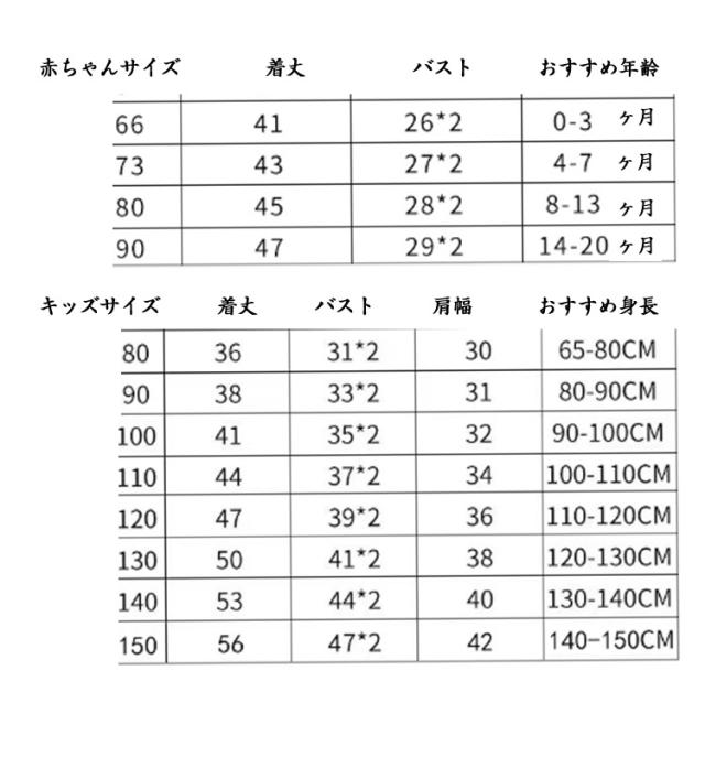 | サイズ | ロンパース66 ロンパース73 ロンパース80 ロンパース90 80 90 100 110 120 130 140 150 XS S M L XL 2XL 3XL 4XL |