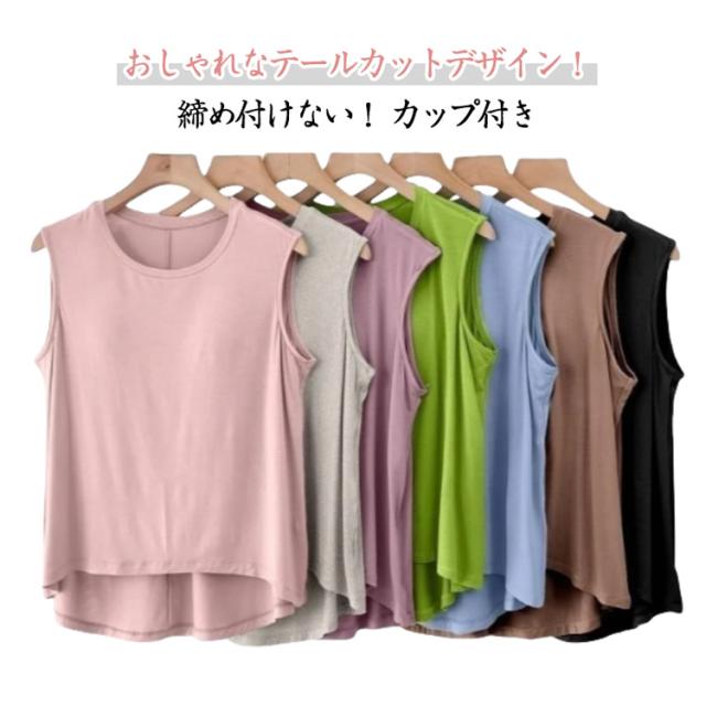 テールカット タンクトップ カップ付き ルームウェア レディース ノースリーブ チュニック 部屋着 テールカット ゆったり 締め付けない カップ付 インナー 春 夏 シンプル かわいい L XL 2XL
