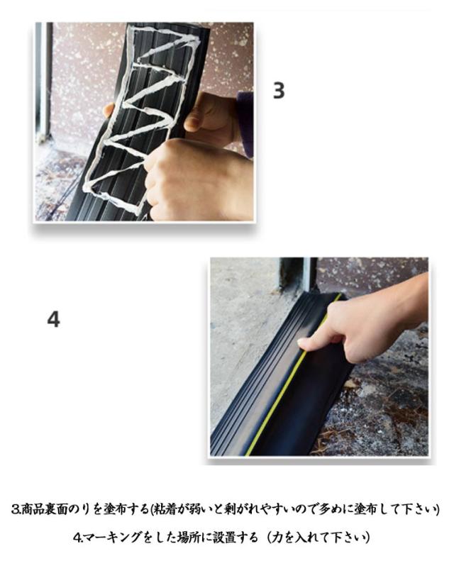 | 【長さ6M】【のり付き】 雨/雪/埃/風の侵入対策に!PVC素材なので自由にカット可能ゴムストリップ。 車庫、扉、ガレージ、シャッター等の地面に取り付けすることで、シャッター等が閉まったときにしっかりと密閉し隙間を無くすことで雨風、埃 等の侵入を防ぐゴムストリップです。 高さ12mmの山なりデザインを採用することでより高いレベルの防塵、防水性を実現しました。耐久性に優れているPVC素材を採用しているので車などで踏んでも変形しにくく長寿命、防水性も抜群です。 シーリング材を塗布して貼り付けるだけの簡単装着となっており、コンクリート、アスファルト等に使用できるので利便性が良く、長さは1M 3M 5Mから選択可能です。 【取付手順:※設置箇所は綺麗に清掃をして下さい。ゴミ、水などがあるとシーリング材の接着が弱くなり副がれやすくなりますのでこ注意下さい。】1.必要な長さにカットする(はさみでカット可能)2.取り付けをしたい場所にマーキングをする(シーリング材を塗布する前にマーキングして下さい)3.商品裏面のりを塗布する(粘着が弱いと剰がれやすいので多めに塗布して下さい)4.マーキングをした場所に設置する(力を入れて下さい)5.完成! | |