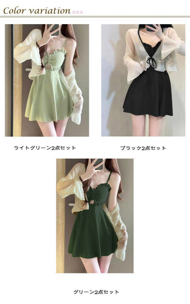 | パッド付き・ノンワイヤー 水着ワンピース2点セット おしゃれに体の気になる部分を隠してくれるので夏のマストアイテム間違いなし!気になるお腹やお尻をふんわりカバーしてくれます。お日焼け対策もできる。しっかりスタイルアップ!!シンプルデザインで適度に肌見せをしてくれるワンピース水着です。 目を引く甘いフリルが大人可愛いワンピース水着2点セットです。気になるお腹周りやヒップをしっかりカバーします!温泉やビーチにぴったりの可愛い体型カバー水着ワンピースです。 嬉しいパッドつき!届いてすぐに使える!綺麗なバストをメイクできます。パッドの入れ替えも可能で、さらに盛りたいという願望も叶います。 | |