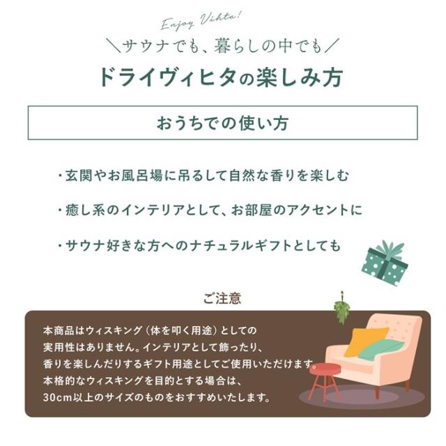 国産ヴィヒタ 北海道産 白樺 ドライヴィヒタ ミニサイズ 玄関 自然な香り 部屋 匂い インテリア ととのう 約20cm s60
