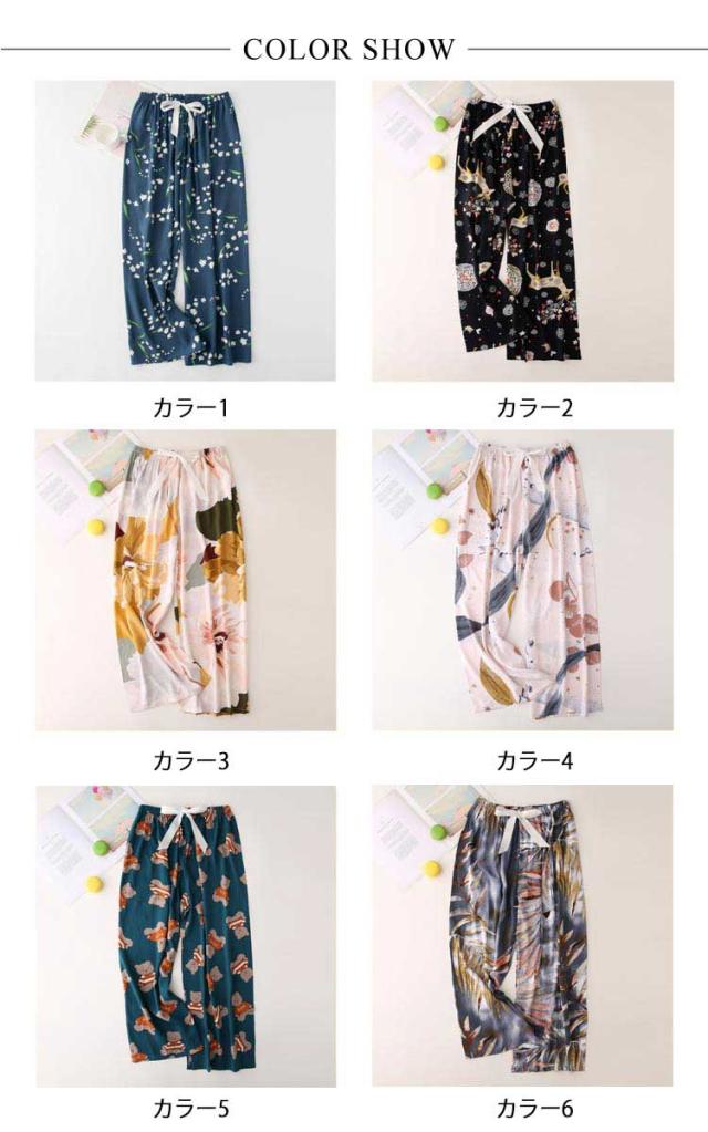 | 全15柄・部屋着 パンツ全体に繊細な花柄プリントを施し、パステルカラーと違い模様を組み合わせたデザインで、ナチュラルでロマンチックなホームウェアの雰囲気を演出。 ゆったりしたパンツ丈が動きやすさを確保し、座臥時の制約感を軽減します。 シルクのような滑らかな肌触りで、吸湿発汗性に優れ、軽やかな着心地が特徴。(注:洗濯後縮むことがありますので、ご了承ください) 適度な弾力性のあるウエストバンドが様々な体型にフィット。きつく締め付けない快適な履き心地を実現。(ウエストのリボンは装飾用ので、サイズ調整機能はありません) | |