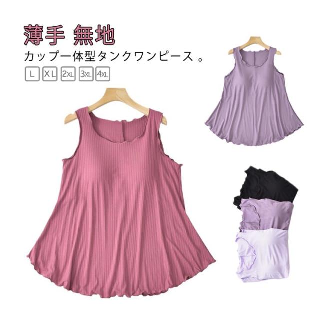 カップ付き タンクワンピース ノースリーブ 寝間着 カップ付き 無地 チュニック 薄手 インナー 無地 夏 ラウンドネック トップス タンクトップ 部屋着 大人 カジュアル タンク キャミ トップス 大きいサイズ