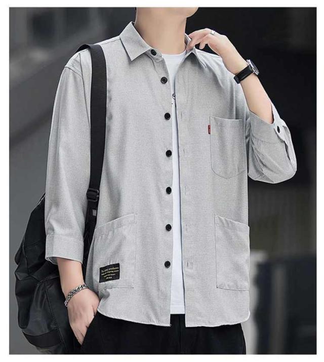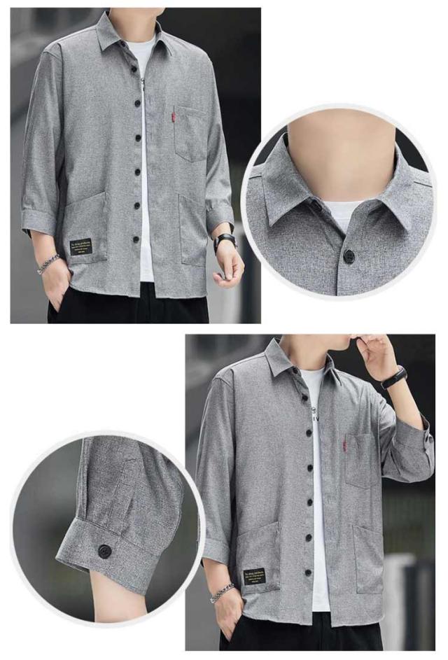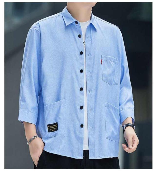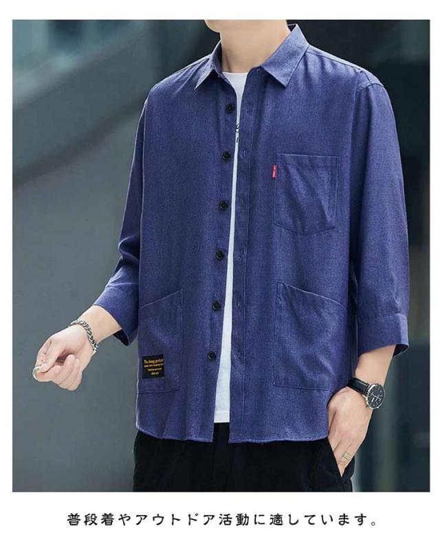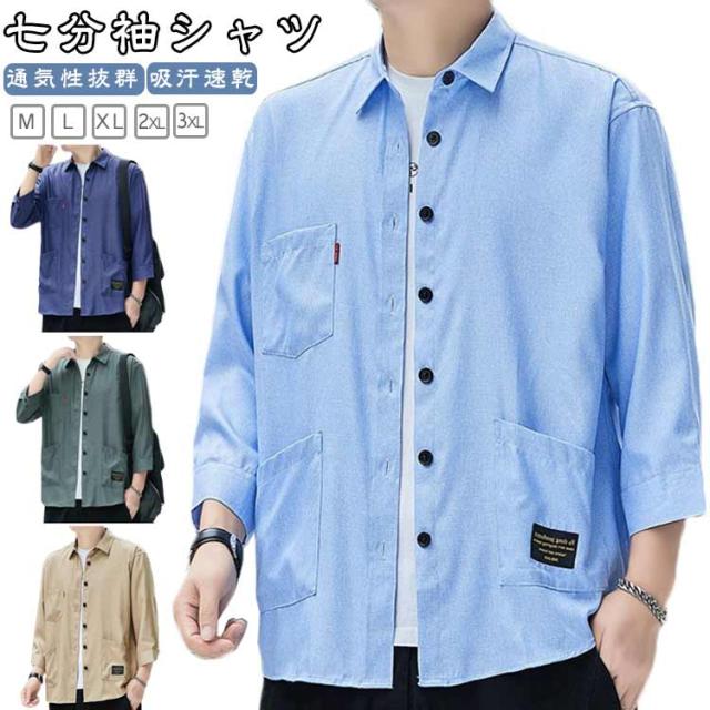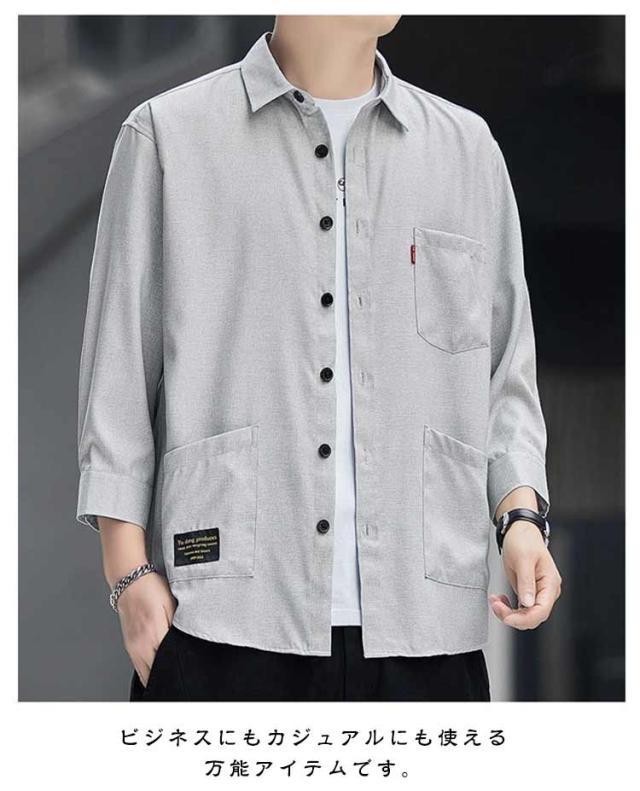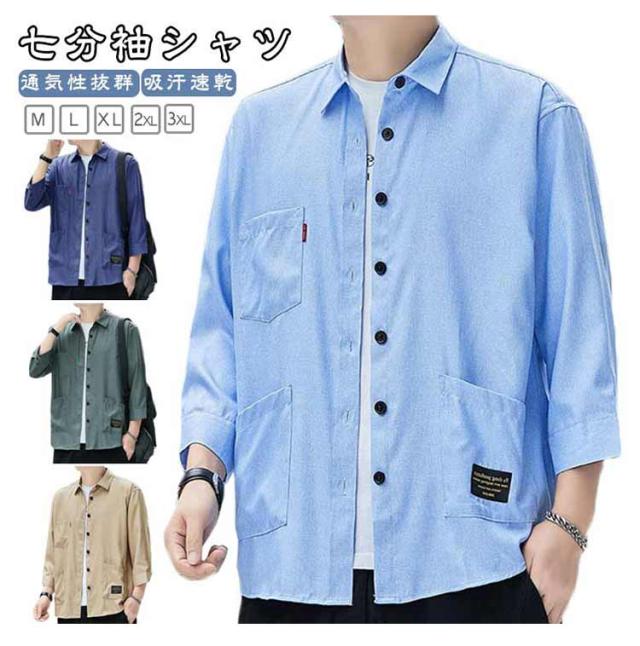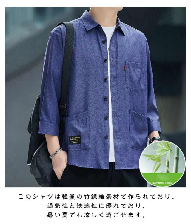 ジュアルシャツ 夏服 半袖シャツ ゆったり 薄手 竹繊維 涼感 アイスシルク 七分袖シャツ シンプル トップス 涼しい 通気性抜群 吸汗速乾 シャツ 汗染み防止 メンズ オシャレ 快適 軽い 柔らかい