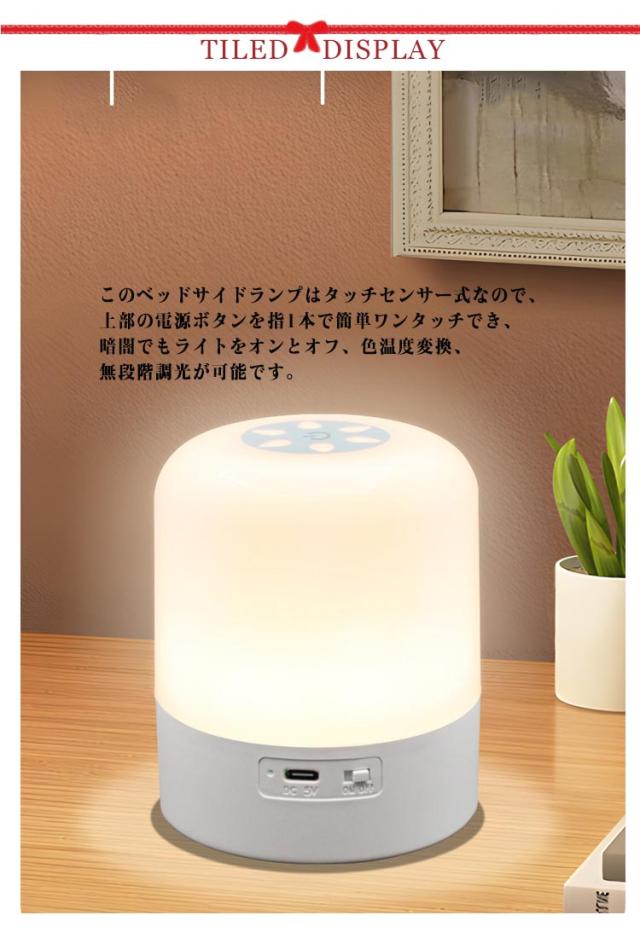 | このベッドサイドランプはタッチセンサー式なので、上部の電源ボタンを指1本で簡単ワンタッチでき、暗闇でもライトをオンとオフ、色温度変換、無段階調光が可能です。 テーブルに置くだけではなく、ベッドサイドに吊り下げることもできます。 持ち運び時に便利な持ち手が付いているので、フックに引っ掛けてご使用もいただけるのでとても便利です。 リビング、ダイニング、ベッドルーム、オフィス、お子供とお年寄りの部屋などのような場所です。 眩し過ぎない目に優しい柔らかい光で、赤ちゃん室やお年寄りのベッドルームなどの室内などに授乳ライト/オムツ替え時/常夜灯/間接照明/常備灯/ベッドサイドランプとしては最適です。 パーティーやデートタイム、誕生日、クリスマス、新年にお年寄りや子供や女性へのギフトなどにもおすすめです。 さらに、アウトドア、キャンプでも大活躍!急な停電などの非常時にもとても便利なので、非常用に準備しておくのもおすすめいたします。 | |