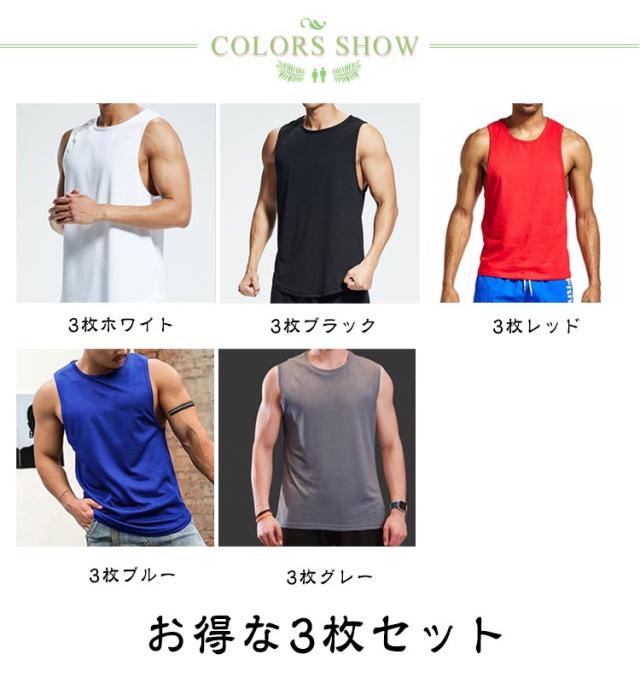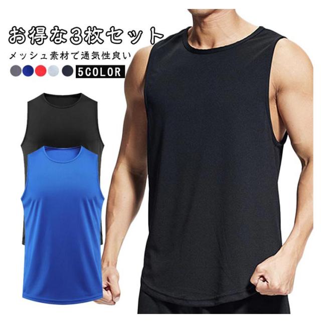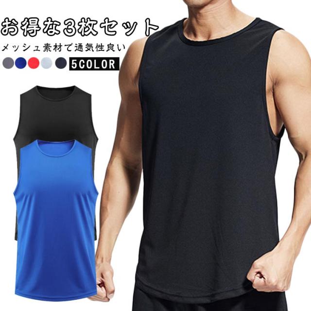 タンクトップ 3枚セット フィットネス トレーニングウェア ノースリーブ 3枚セット メンズ 通気性 運動着 メッシュ タンク スポーツウェア タンクトップ 肌着 無地 ジム 吸汗 速乾 無地 ノースリ 涼しい 通気性に優れた生地 メンズタンクトップ 夏