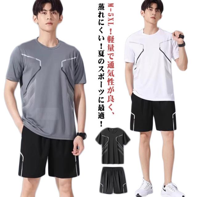 部屋着 無地 tシャツ ハーフパンツ ハーフパンツ 短パン バドミントン 夏 スポーツウェア バスケット 上下セット ジム スポーツウェア 半袖Tシャツ ランニングウェア トレーニングウェア カジュアル 半袖 吸汗速乾 メンズ 通気性 軽量 ドライ 薄手 ジャージ