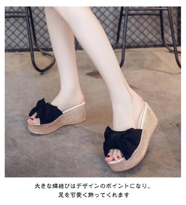 サマー ウエッジソール 9cmヒール 厚底サンダル レディース リボンサンダル リゾートサンダル ヒールサンダル ミュール サボ 春 かわいい 大人 7cmヒール 厚底 歩きやすい サンダル おしゃれ 痛くない 夏 スリッパ履きやすい