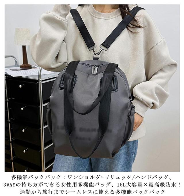 | カジュアル大容量防水バックパック レディース:カジュアルリュックサック、防水性&耐摩耗性、多way使用、手提げ/背負う/肩掛け、切り替え可能、カジュアルからキレイめまで活躍 オックスフォード撥水生地:高品質素材、耐摩耗、耐スクラッチ、防水、防?、お手入れが簡単 多機能バックパック:ワンショルダー/リュック/ハンドバッグ、3WAYの持ち方ができる女性用多機能バッグ、15L大容量×最高級防水!通勤から旅行までシームレスに使える多機能バックパック 撥水加工:耐摩耗性に優れ、柔らかく、通気性があり、高い耐水性を持ち。大容量、軽量、厚手・耐傷性/撥水加工/丈夫で耐久性も、持ち運びに便利です、お出かけを身軽に 様々なシーンに適用:大容量で収納力抜群、エレガントでスタイリッシュ、お出かけにぴったり! コーデに合わせやすくて様々なシーンに適用 | |