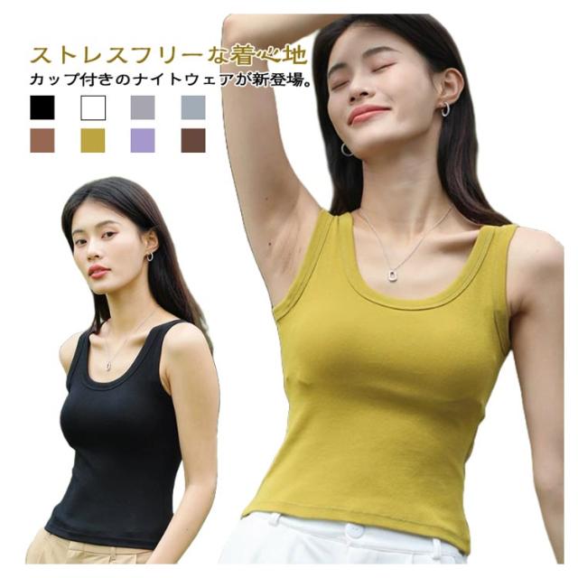 ブラトップ タンクトップ 肌着 薄手 カップ付きタンクトップ レディース タンクトップ ノースリーブ ナイトブラ 締め付けない ブラトップ アンダーフリー アンダーゴムなし カップ付きインナー ノンワイヤーブラ