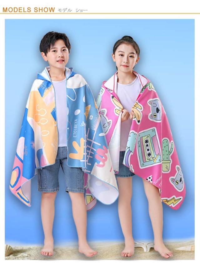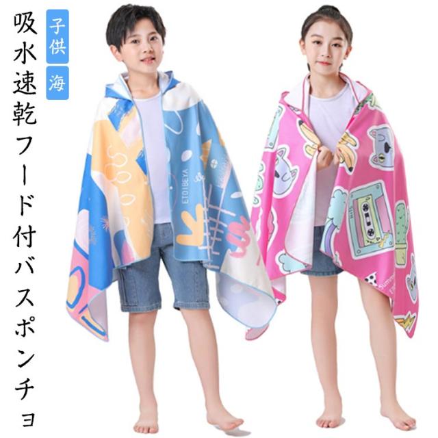 速乾 フード付き 吸水 バスタオル バスタオル タオルポンチョ 男の子 女の子 子供 キッズ バスローブ プール