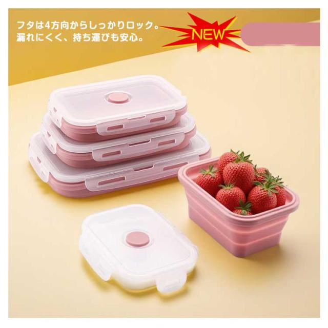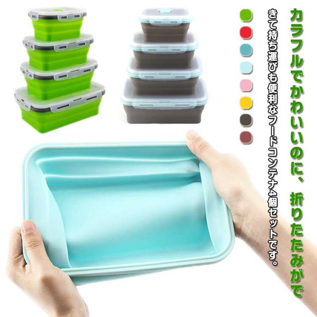 4個セット 4個セット 冷凍・電子レンジOK 保存容器 キャンプ 折りたたみ シリコン ランチボックス 調理&保存が可能 密閉 フードコンテナ 耐熱 漏れない 折りたたみ式 お弁当箱 サステナブル 密封 行楽 運動会 コンパクト 350ml 500ml 800ml