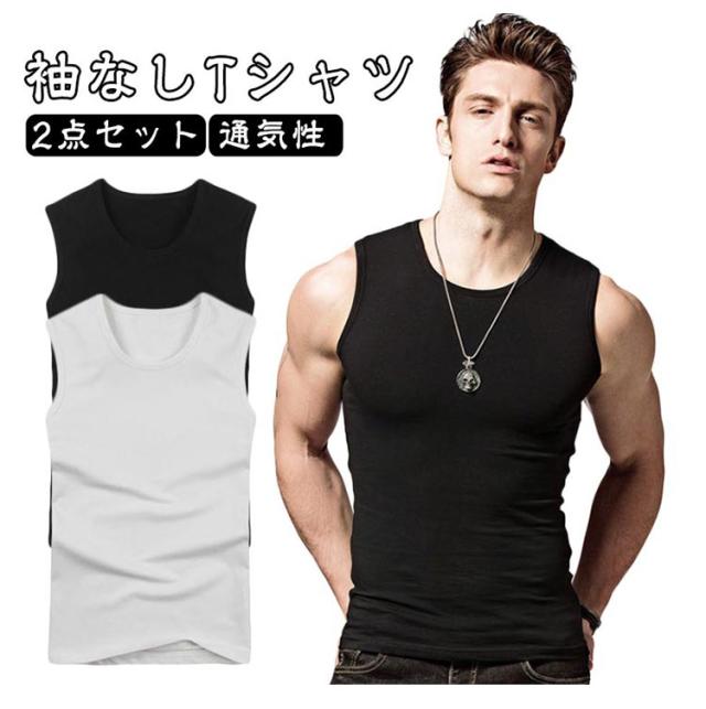 2点セット タンク タンクトップ 2枚組み Uネック メンズ スポーツ 無地 2点セット タイト ジム服 ノースリーブ 薄い トレーニングウェア 筋トレ 部屋着 綿 メンズタンクトップ コットンtシャツ トップス 夏 夏物 通気性に優れた