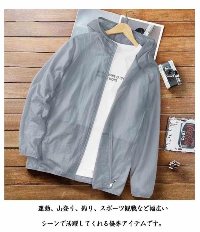 メンズ 薄手 UVパーカー UVカットパーカー 速乾 フルジップパーカー UVパーカー トップス ジャケット アウター フード付き 長袖 涼しい ひんやり ラッシュガード 冷房対策 通気性 夏用 アウトドア 羽織り ライトアウター