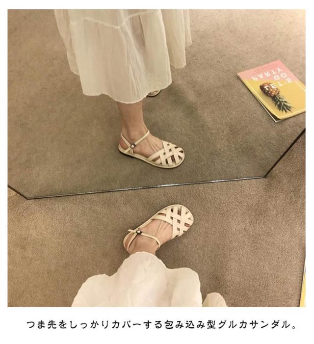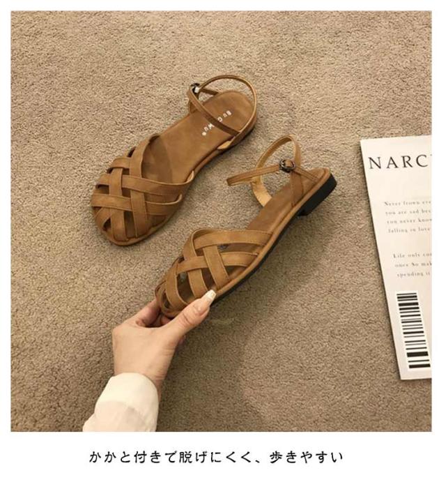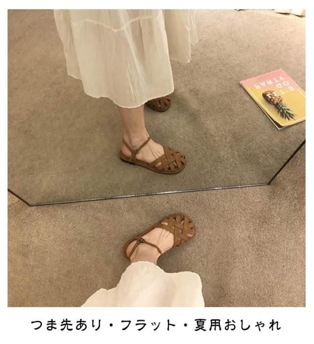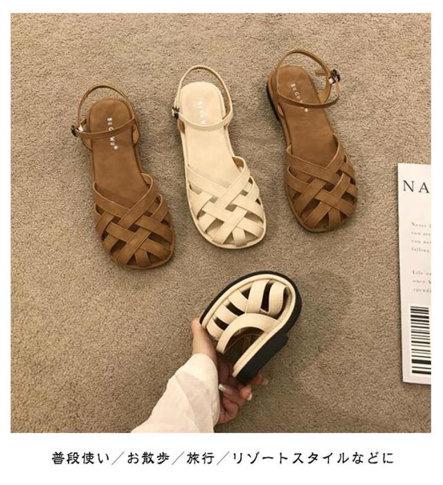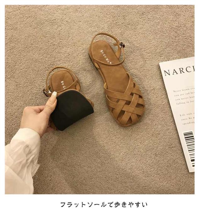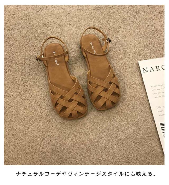 | レディース 編み込みサンダル つま先あり・フラット・夏用おしゃれ つま先を守る包頭デザイン つま先をしっかりカバーする包み込み型グルカサンダル。 指先の日焼けや汚れを防ぎつつ、抜け感のあるデザインで夏らしさも◎ 落ち着いた雰囲気の中に、トレンド感をプラス。 フラットソールで歩きやすい かかと付きで脱げにくく、歩きやすい ナチュラルコーデやヴィンテージスタイルにも映える、 普段使い/お散歩/旅行/リゾートスタイルなどに | |