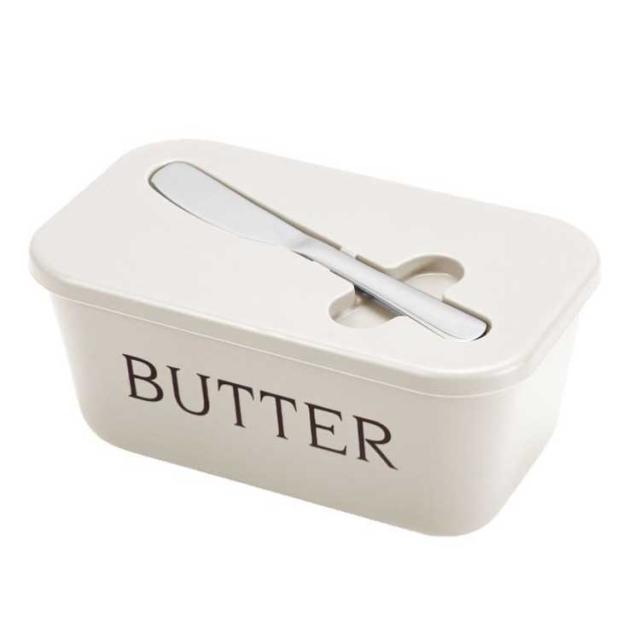 | シンプルなデザインに機能性が備わったマーナのバターケースです。 蓋付きでバターのフレッシュさが長持ちします。 バターを薄く切れるカッターが付属しており、使いたい時に必要なサイズにカットできます。 カッターはフタの上に収納できるので保管場所にも困りません。 パーツに分解して洗えるので衛生的です。 無駄を省いたコンパクトなデザインと、シンプルなフォルムが生活スペースを機能的に、美しく整えてくれます。 | |