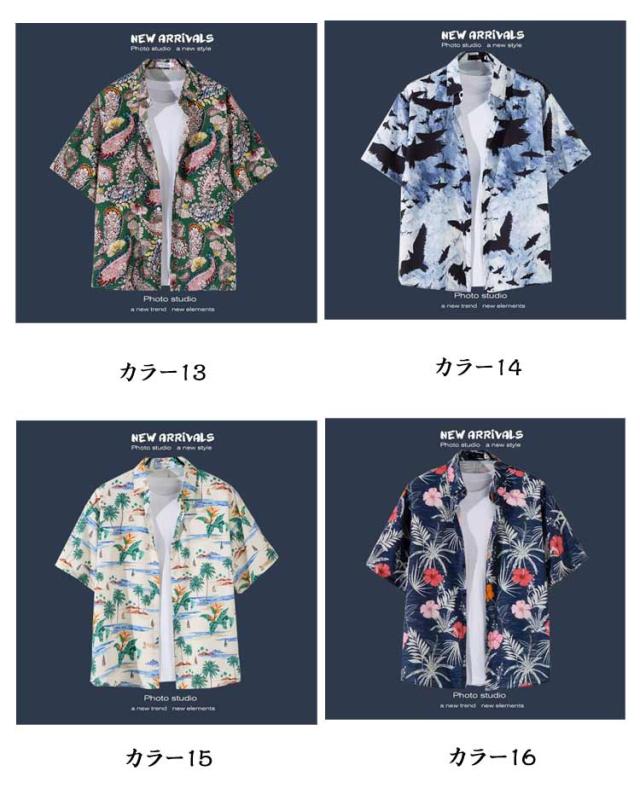 | 【全20柄】 【M L XL 2XL 3XL】 通気性と速乾性を持つ上質ポリエステル生地を採用し、肌に優しいです。 絶妙な仕立てと縫製、しっかりとした生地で丈夫なのです。 薄手の生地でおしゃれな柄の開襟男女兼用ハワイアンなアロハシャツです。 繊細かつ鮮やかなプリント柄模様のデザインが上質なため、派手過ぎず上品に着こなせます。 スタイリッシュなデザインだけでなく、お洒落度が上がる事間違いなしのオススメアイテムです。 大きめのビッグシルエットですので、Tシャツと重ね着スタイルで、さわやかな印象です。 羽織としても日焼け止めできて、冷房の中に保温もできて、簡単におしゃれを楽しめる便利なメンズシャツです! シャツ1枚で着用はもちろん、ボタンを開けて、カーディガンシャツとして重ね着用も抜群です。 デニムパンツやスキニーパンツ、ワイドパンツ、イージーパンツ、ショートパンツなどどんなボトムスとも相性が良く、アウトドアなど様々なシーンで活躍に間違いないです。 | |