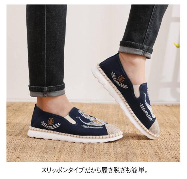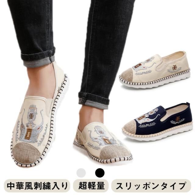 カジュアルシューズ メンズ スリッポン エスニック柄 春夏 エスニック柄 歩きやすい 軽量 刺繍スリッポン 大きサイズ 夏 シューズ 父の日 プレゼント