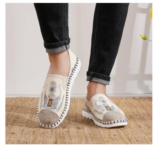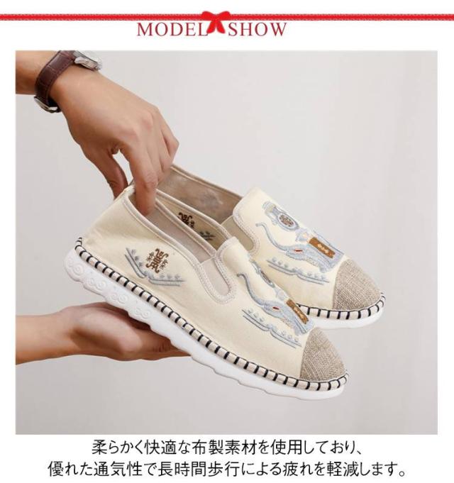 | 民族風刺繍入りのメンズ布製シューズ。 表面に施された刺繍模様は繊細で精緻で、芸術的な魅力にあふれ、民族ならではの魅力と気品を引き立てています。 柔らかく快適な布製素材を使用しており、優れた通気性で長時間歩行による疲れを軽減します。 スリッポンタイプだから履き脱ぎも簡単。 伝統的な民族衣装にも、日常のカジュアルな服装にもぴったりです。 ナチュラルですっきりとしたフォルムとカジュアルな素材感、様々なアイテムと相性が抜群なスリッポンです。 | |