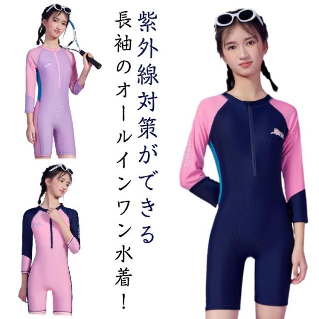 スクール水着 ジュニア ラッシュガード キッズ 長袖 女の子 スクール水着 速乾 水着 女子 中学生 小学生 子ども 日焼け対策 UVカット 小学校 紫外線対策 スイミング スポーツ フィットネス 水遊び 海 プール