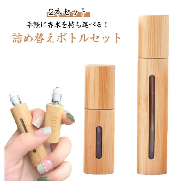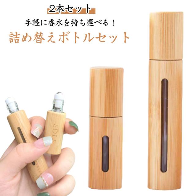 ナチュラル 5ml 10ml おしゃれ 【2本セット】アトマイザー ロールオン 高級感 ボトル 詰め替えボトル 詰め替え 出張 簡単 持ち運び 竹 男女兼用 アウトドア ミニ コンパクト 旅行 【2本セット】アトマイザー 漏れない パフューム コロン トワレ デート