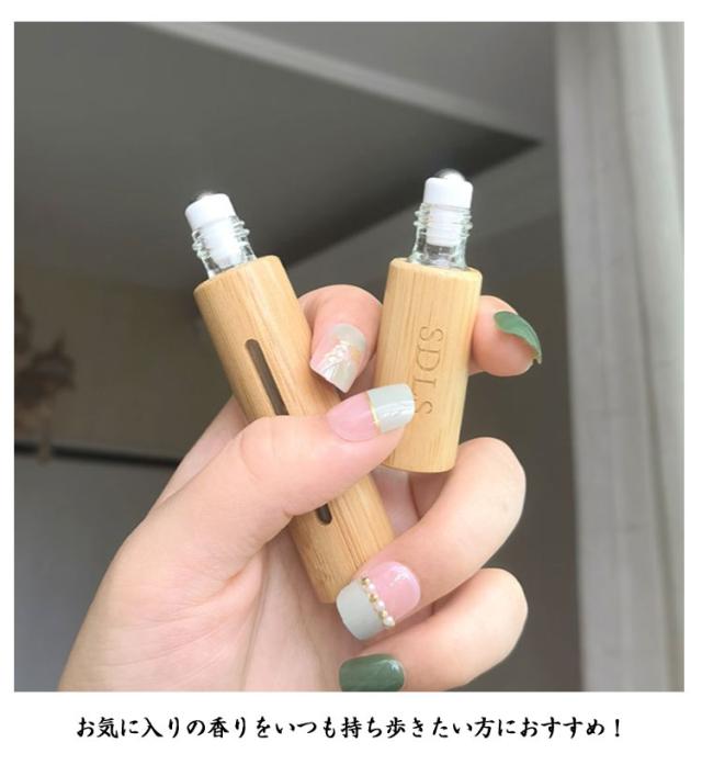 | 【2本セット】 手軽に香水を持ち運べる! 詰め替えボトルセット 好きなところに好きな量を付けられるロールオンタイプの詰め替えボトル。 コンパクトサイズ感、持ち運びにも便利!飛行機の機内持ち込み用にも◎ 残量が一目でわかるデザイン♪ 天然竹素材で、シンプルなお洒落デザインはメンズの方にもお使い頂けます。 選べる5ml・10ml、ニーズに合わせてお選びいただけるにもうれしいポイント。 お気に入りの香りをいつも持ち歩きたい方におすすめ! | |