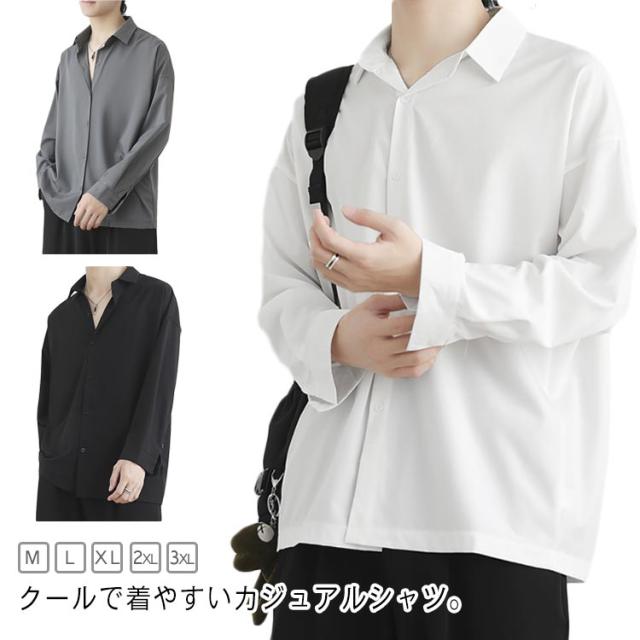 無地 ブラックシャツ 黒 長袖シャツ 夏 白シャツ トップス 春 シャツ ワイシャツ レディース 男女兼用 カジュアルシャツ 長袖 韓国風 ゆったり ブラウス 通学 通勤 グレー ワイシャツ ホワイト ブラック