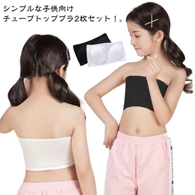 ジュニアブラ チューブトップ パッド付き ブラジャー ベアトップ 2枚セット ブラトップ ノンワイヤー 子供向け 女の子 スポーツブラ ナイトブラ ファーストブラ カップ付き ハーフトップ 子供向け 下着