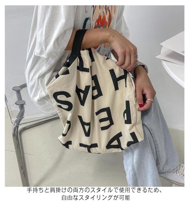 トートバッグ レディース 韓国ファッション エコバッグ 買い物 アルファベット柄 カジュアル レディース ハンドバッグ トートバッグ おしゃれ 便利 たためる 通学 2WAY プチプラ プリント トート カジュアル お洒落 キャンバスバッグ トートバッグ 大容量