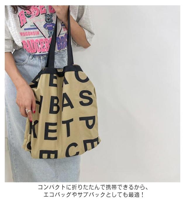 | アルファベットのプリントがお洒落でカジュアルな2WAYトートバッグ コーディネートのアクセントにぴったりな大きめのバッグ 手持ちと肩掛けの両方のスタイルで使用できるため、自由なスタイリングが可能 スクエア型のデザインで、たっぷりの荷物を収納できる大容量が魅力 内部には便利なポケットが備わっており、小物の整理整頓に役立つ コンパクトに折りたたんで携帯できるから、エコバッグやサブバックとしても最適! | |