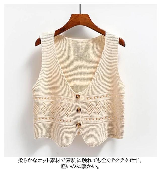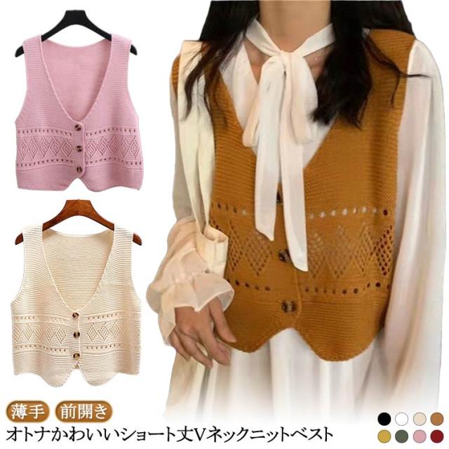 ベスト ニット Vネック ショート丈 春夏 薄手 シンプル レディース カーディガン Vネック 可愛い ニットベスト 前開きベスト ノースリーブ ボレロ カーディガン 羽織 無地 前開き 重ね着 トップス 春 夏 秋 アウター 通勤
