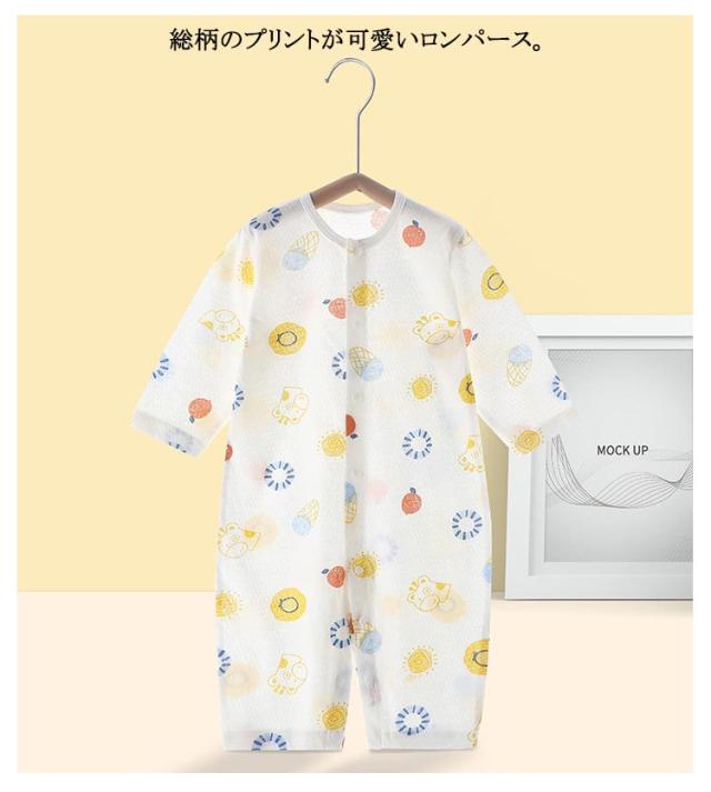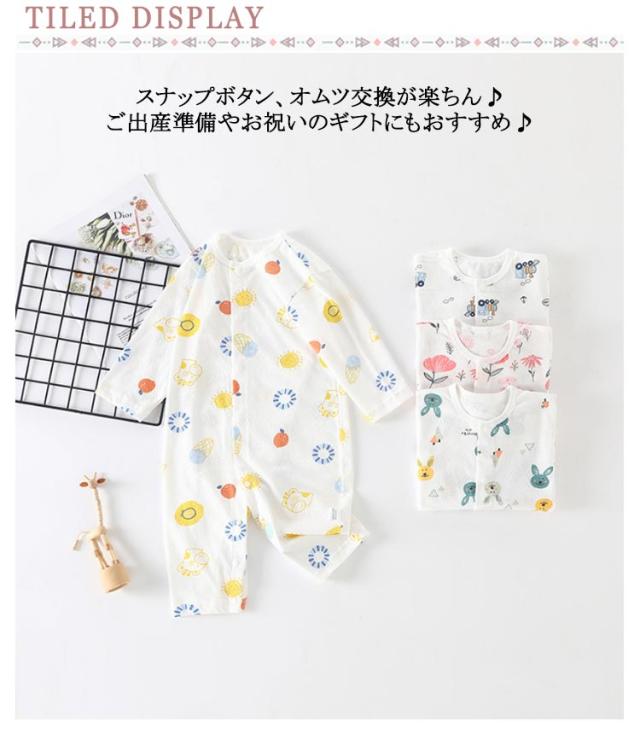 赤ちゃん 長袖 73 前開き 薄手 女の子 綿 春夏 部屋着 男の子 ベビー服 子供服 キッズ服 コットン 夏 総柄 可愛い かわいい 新生児 出産祝い カバーオール 66 59 80 90cm ルームウェア 柔らかい パジャマ プレゼント お出かけ 2枚セット 吸汗速乾