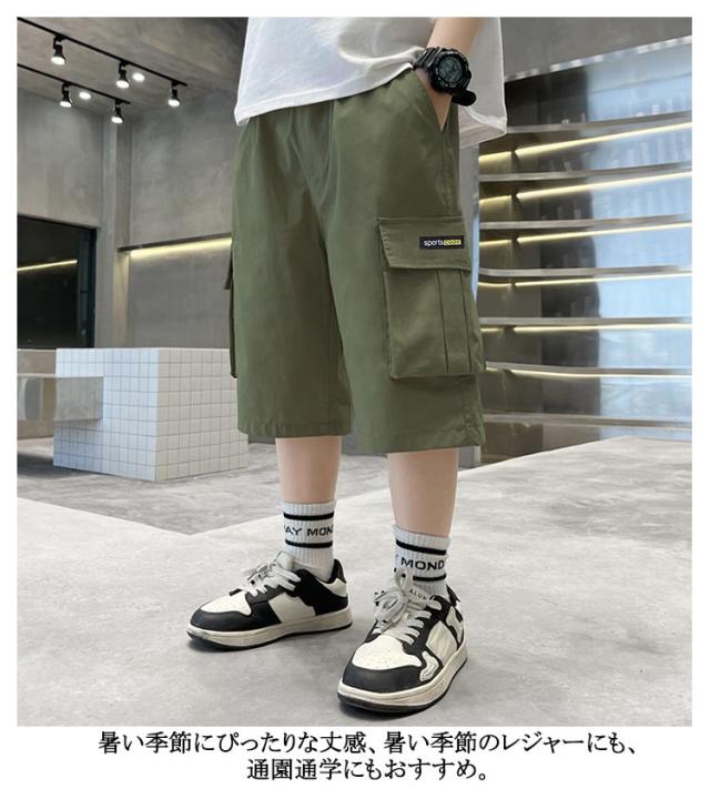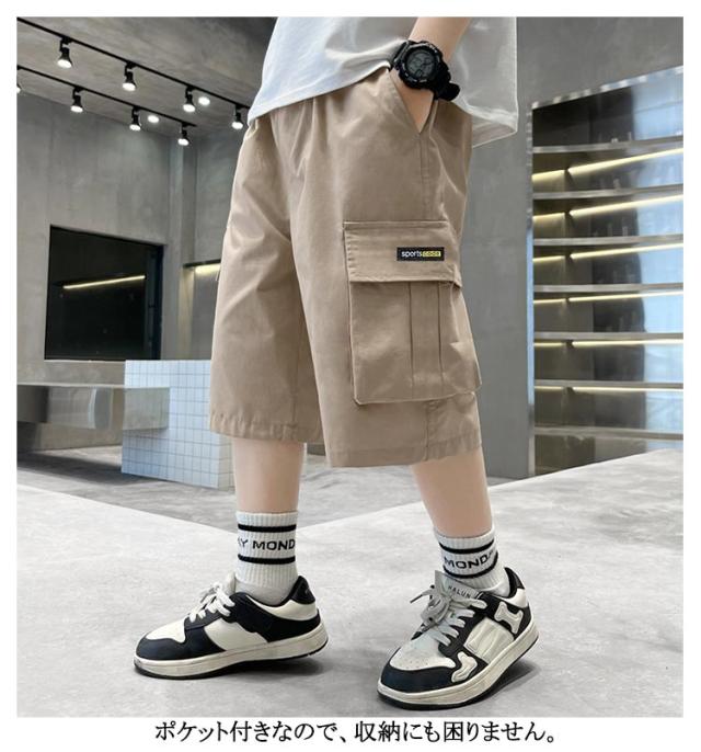 ジュニア 半ズボン 薄手 160 160 男の子 7分丈 カーゴパンツ 130 韓国子ども服 子供服 夏 ボトムス イージーパンツ パンツ ショートパンツ ボーイズ おしゃれ カジュアル ウエストゴム キッズ 120 小学生 140 150