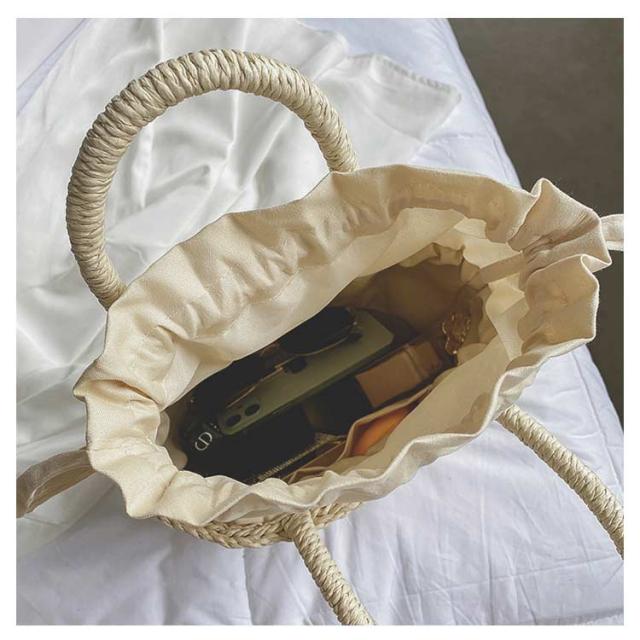 草編み かごバッグ 小きめ かご編みバッグ レディース 軽量 ハンドバッグ 手提げ 可愛い お花見 かごバッグ カバン トート ペーパーストローバッグ 巾着付き バスケット型 ナチュラル 水着 浴衣 バレンタイン カゴバッグ カゴバックハンドバッグ ミニバッグ 旅行