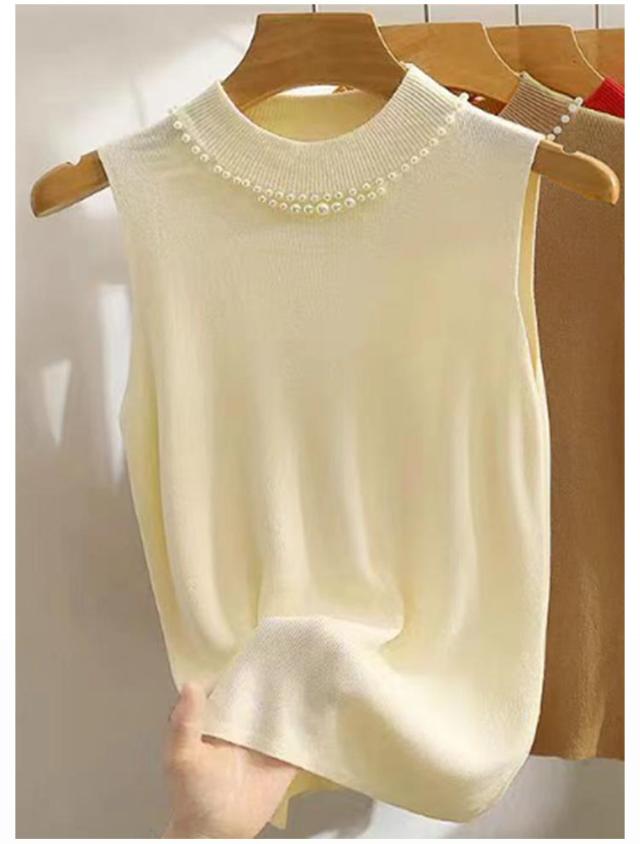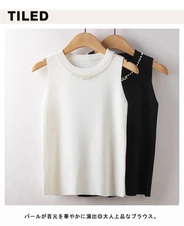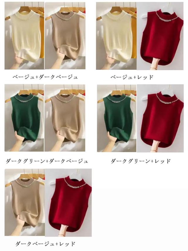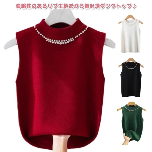 【2枚セット】 タートルネック ノースリーブ レディース キャミソール パール付き サマーニット 通勤 リブニット ニットトップス ハイネック タンクトップ 20代 スーツインナー 送料無料 無地 フェミニン きれいめ 大人 カットソー 【2枚セット】 30代 40代