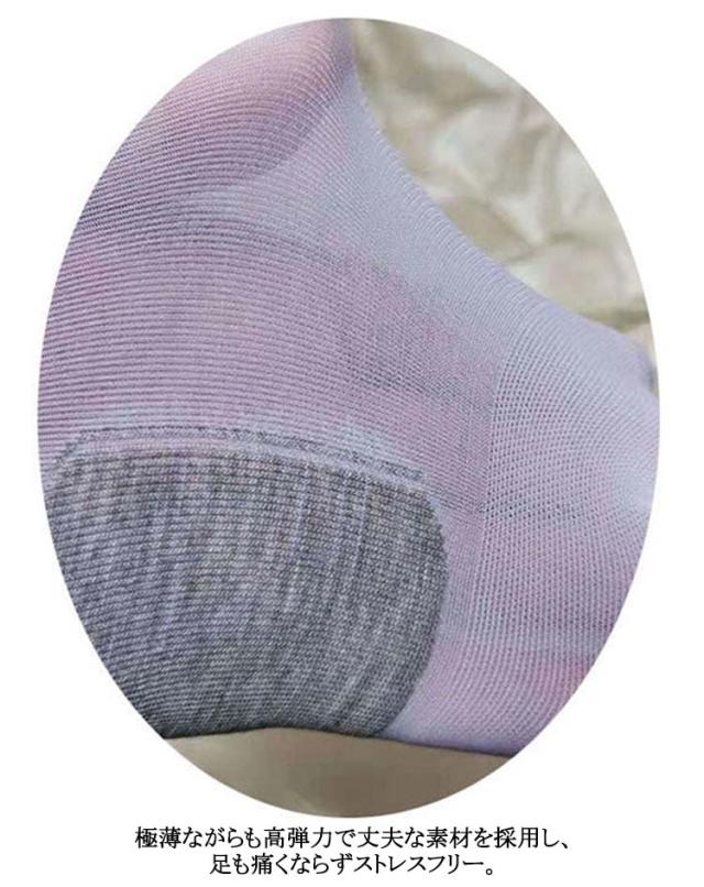 | 「ネイル見せ」指先なしハーフソックス 5足組! 指先レスタイプで、蒸れ防止にもなり、足もとの快適さを保ってくれます。 極薄ながらも高弾力で丈夫な素材を採用し、足も痛くならずストレスフリー。 履き心地と耐久性の両方とも配慮し、蒸れ感が少なく、不快感が軽減されたうえ。綿素材で肌当たりが良く汗も吸ってくれます。 伸縮性も良く、ソフトな肌触りの履き心地・フィット感。 パンプスを履いても圧迫感のない薄手生地を使用。伸縮性に優れ、吸湿速乾効果も。 | |