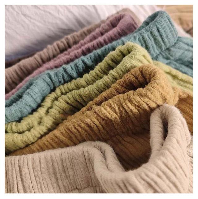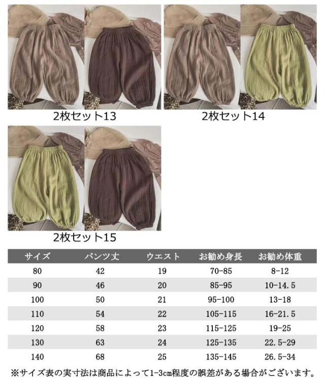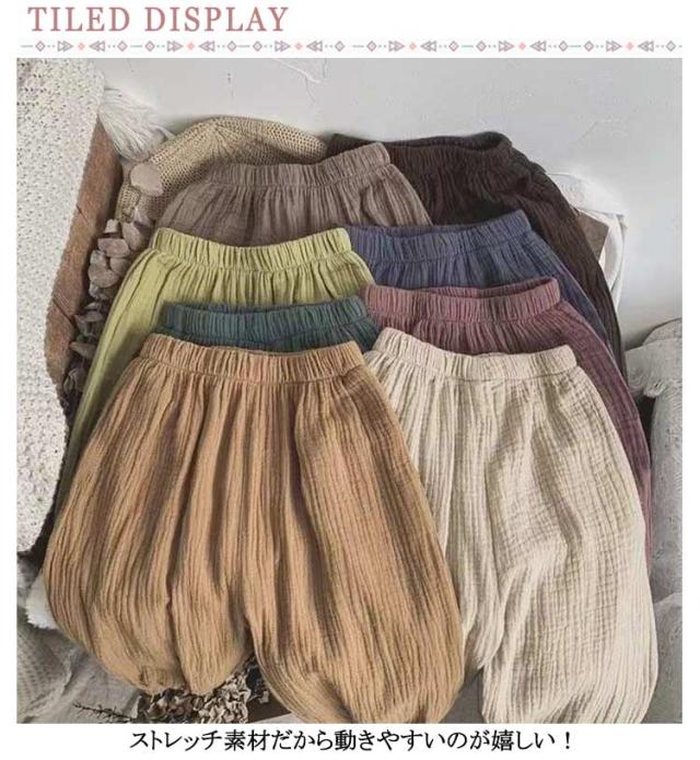 | 【2枚セット】【80-140cm】【涼しい長ズボン】【ガーゼ素材】 夏場でも涼しく履けるガーゼ素材のベビーズボンです。 通気性に優れていて、肌を出さないので虫よけにも。 やわらかくゆったりした作りなので、足を動かしやすいです。 ウエストや裾のゴムで楽ちんな履き心地です♪ 部屋着や通園、お出かけにも可愛く着られるデザイン。 部屋着にもお外着にも、何かと重宝するベビーパンツです。 | |