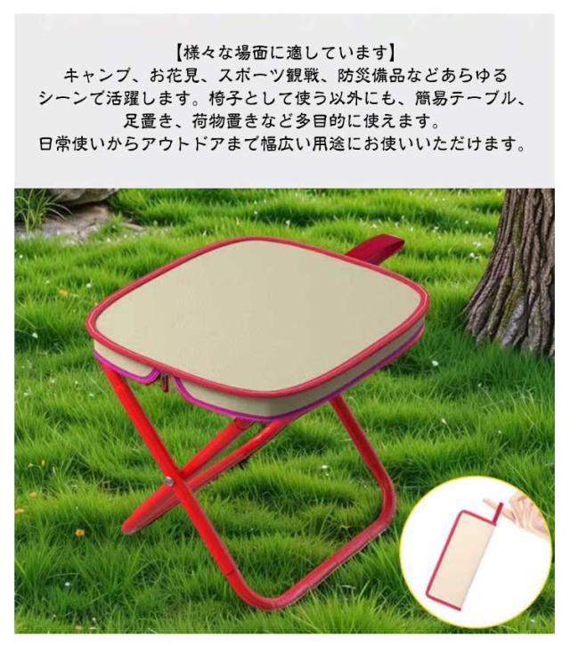 | 折りたたみ式 アウトドアチェア。軽量スツール。 【収納ケース一体型】座面が収納バッグに変わる画期的な折りたたみ椅子です。フレームを引き上げるだけで瞬時にコンパクトになり、一体型の収納ポケットで管理も簡単です。折りたたみ傘のように持ち運びやすいミニサイズです。 【非常に軽量】カーボンスチール製X型フレーム構造は、120kg の荷重に耐えることができます。バッグの中の狭いスペースにもすっきり収納できます。 【小型で携帯性に優れています】片手で楽に持ち運びでき、ハイキングや川辺でのレジャーに最適です。 【様々な場面に適しています】キャンプ、お花見、スポーツ観戦、防災備品などあらゆるシーンで活躍します。椅子として使う以外にも、簡易テーブル、足置き、荷物置きなど多目的に使えます。日常使いからアウトドアまで幅広い用途にお使いいただけます。 | |