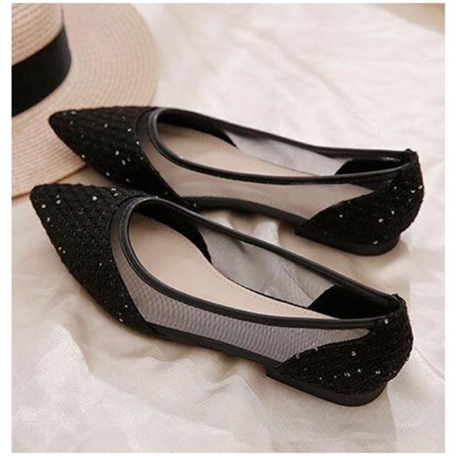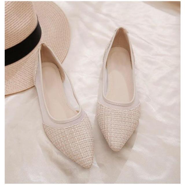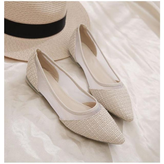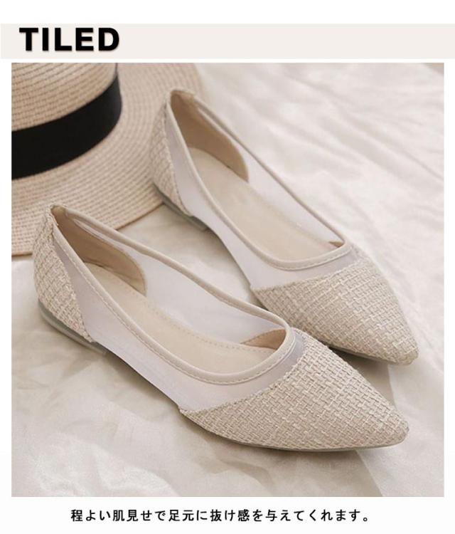 美脚 透け感 パンプス レディース ぺたんこ 春 ツイード フラットパンプス メッシュ パンプス キャンパス 通気性抜群 蒸れにくい 歩きやすい 疲れにくい ポインテッドトゥ フラット チュール 靴 痛くない 夏 きれいめ パンプス 大人可愛い パーティー 結婚式
