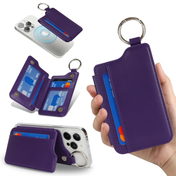 Havaya カードケース magsafe カード入れ スタンド機能 小銭入れ リング付き 4枚カード収納可能 iPhone 17 Pro Max/17 Pro/Air/17、16 ProMax/16 Pro/16 Plus/16、iPhone 15/14/13/12シリーズ対応-ダークパ